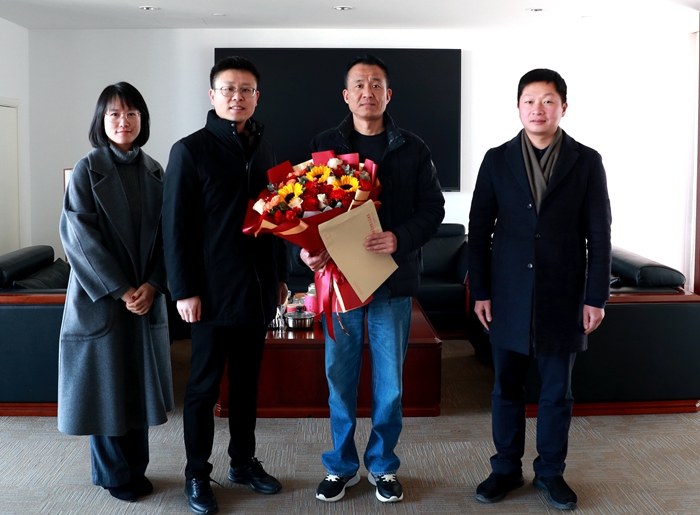 在林森建设集团总部大厦,吴建华为朱董事长送上鲜花,对林森建设在过去一年中取得的成绩表示热烈的祝贺,对林森建设为推动党湾经济社会高质量发展作出的重大贡献表示衷心的感谢,祝愿林森建设在新的一年里获得更好的发展。